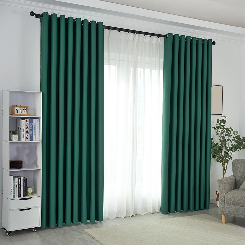 1pc Dark Green Blackout Curtains 90% Room Darkening Elegant Solid Color Thermal Insulated Grommet Drapes
