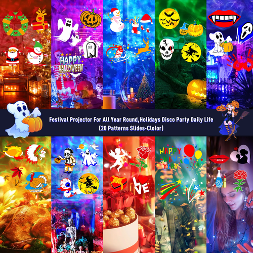 This type of projector has almost 20 holiday slides, you can choose them to match your holiday, and you will never regret buying it~