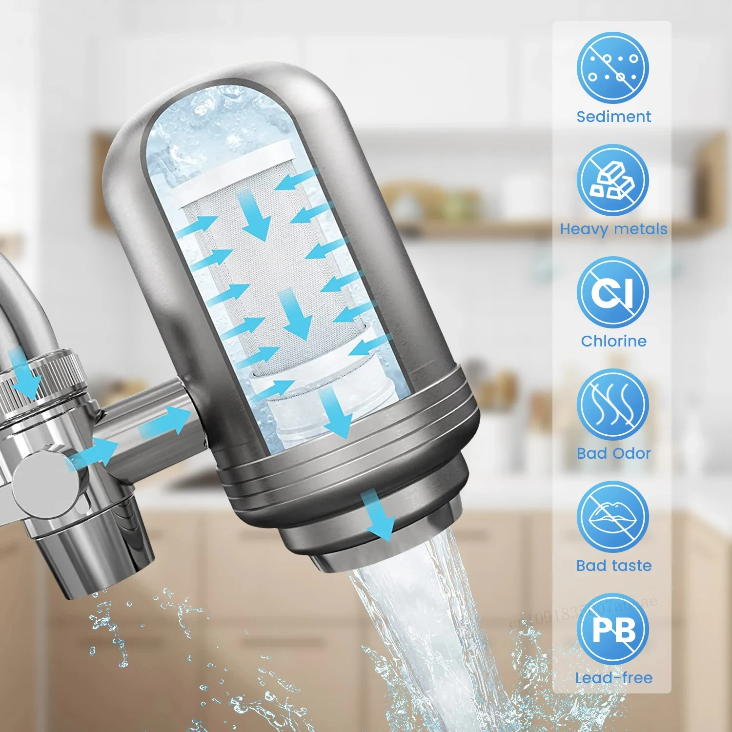 This Stainless Steel Faucet Tap Water Filter is NSF certified, ensuring it meets strict standards for water quality and safety.