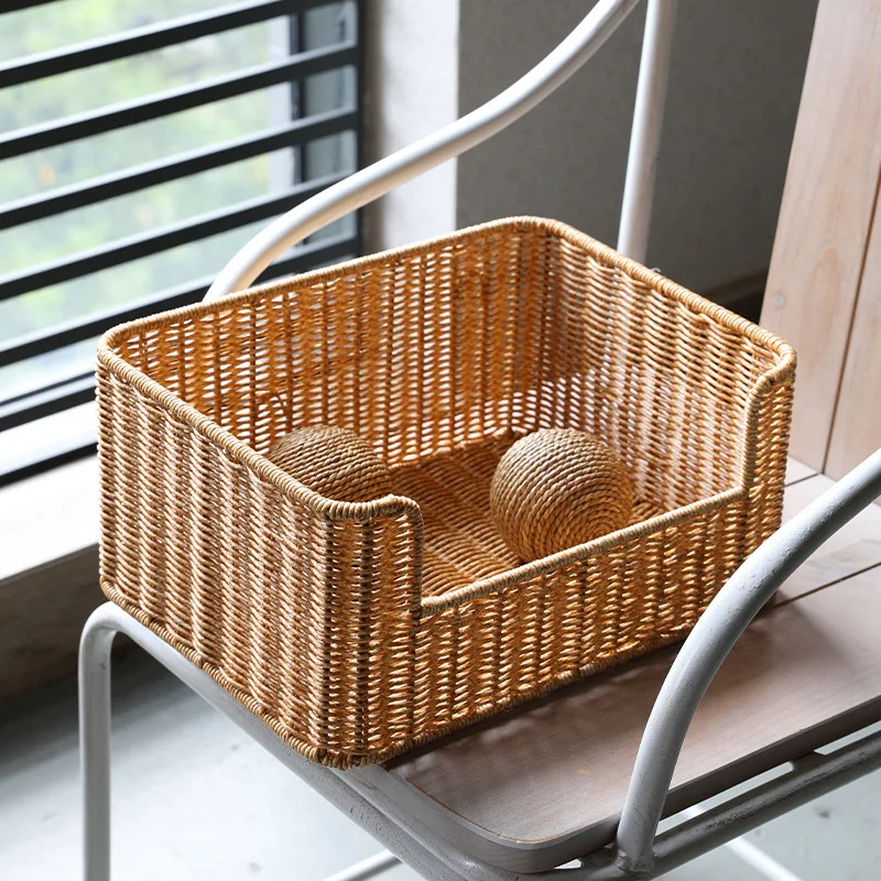 Imitation Rattan Drawer Basket Study Office Book and Document Storage Basket Cabinet Sorting Basket