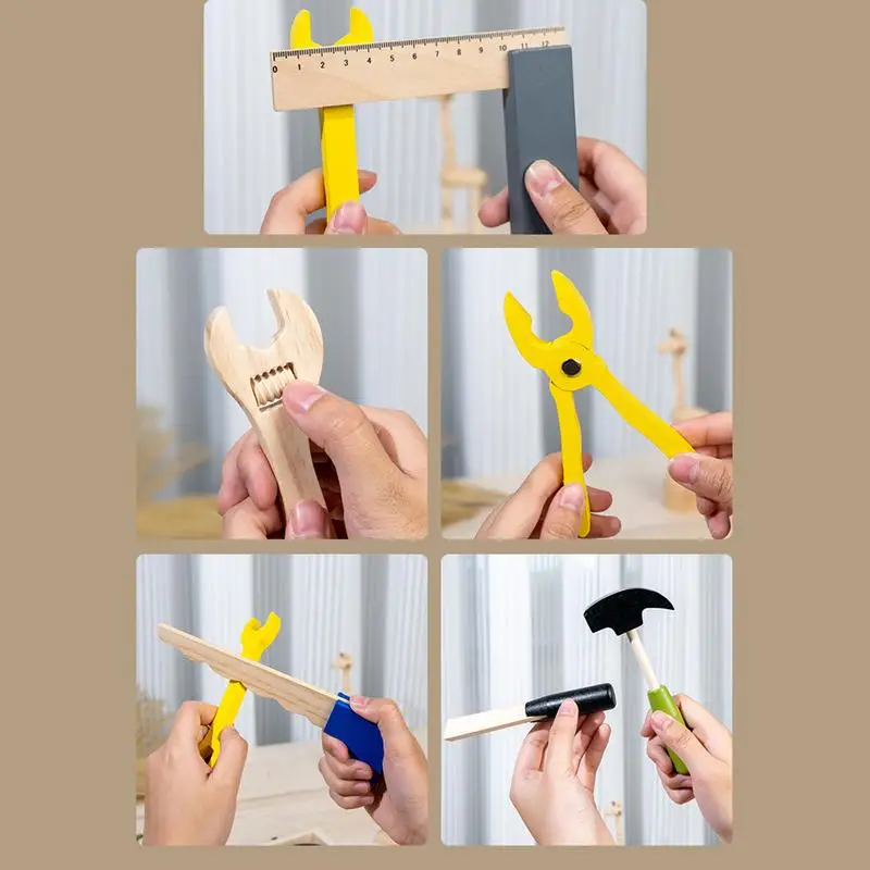 Kids Montessori Tool Set Wooden Tool Kit Toolbox Educational Toys for Boys Girls Tool Construction Play Accessories Set