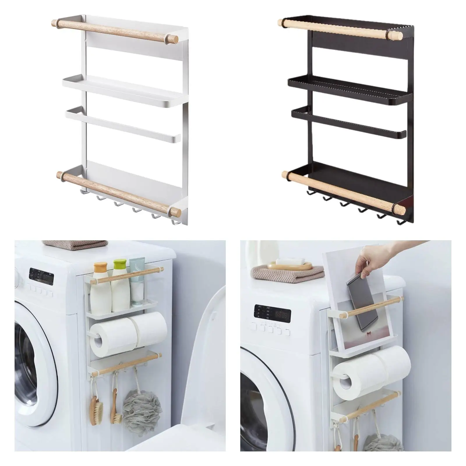 Magnetic Fridge Shelf Wall Holder Space Saving Moveable Multifnctional with Hook Magnetic Spice Rack Refrigerator Organizer