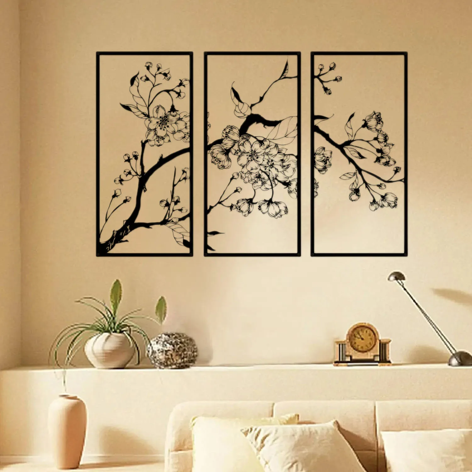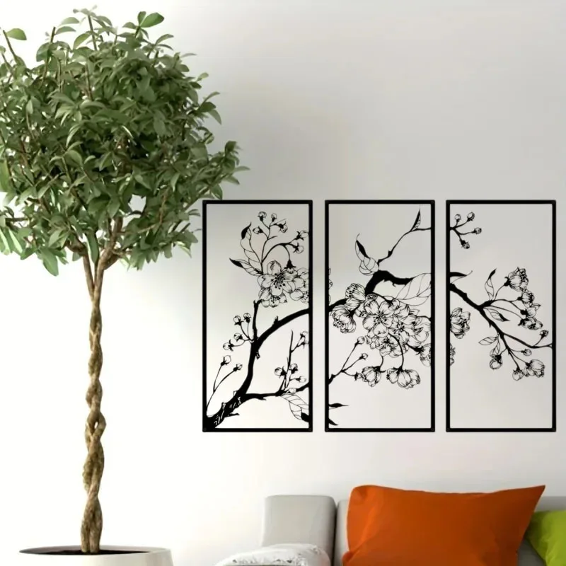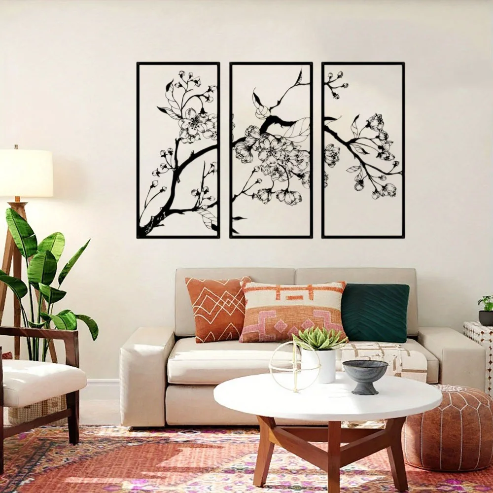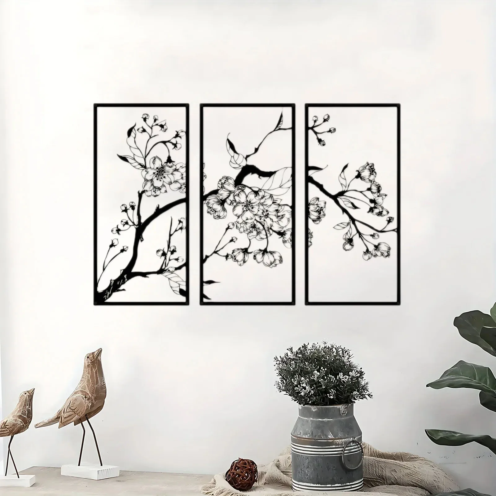 Metal Wall Art: 3Pcs Peach Blossom for Decor” Adorn your walls for Christmas and beyond.