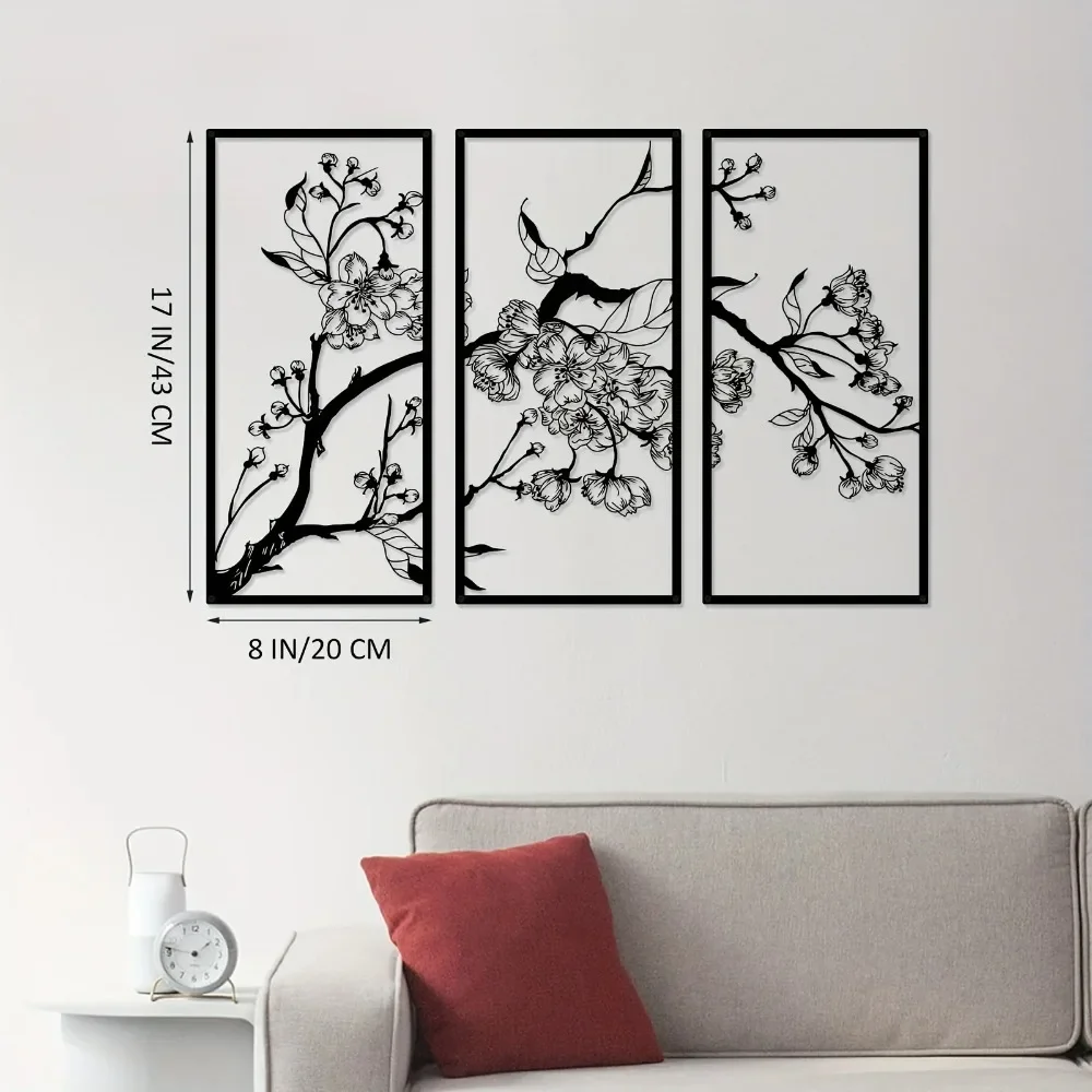 Metal Wall Art: 3Pcs Peach Blossom for Decor” Adorn your walls for Christmas and beyond.
