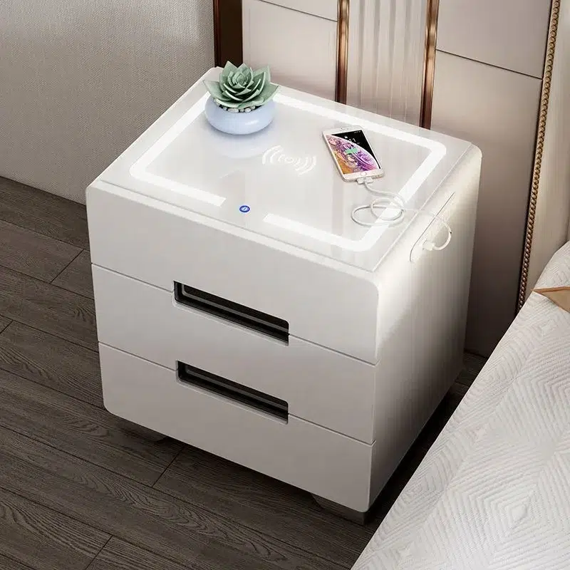 Nordic Modern Smart Nightstand Set | 3-Drawer Bedside Table with Tri-Color LED Lights, USB & Wireless Charging