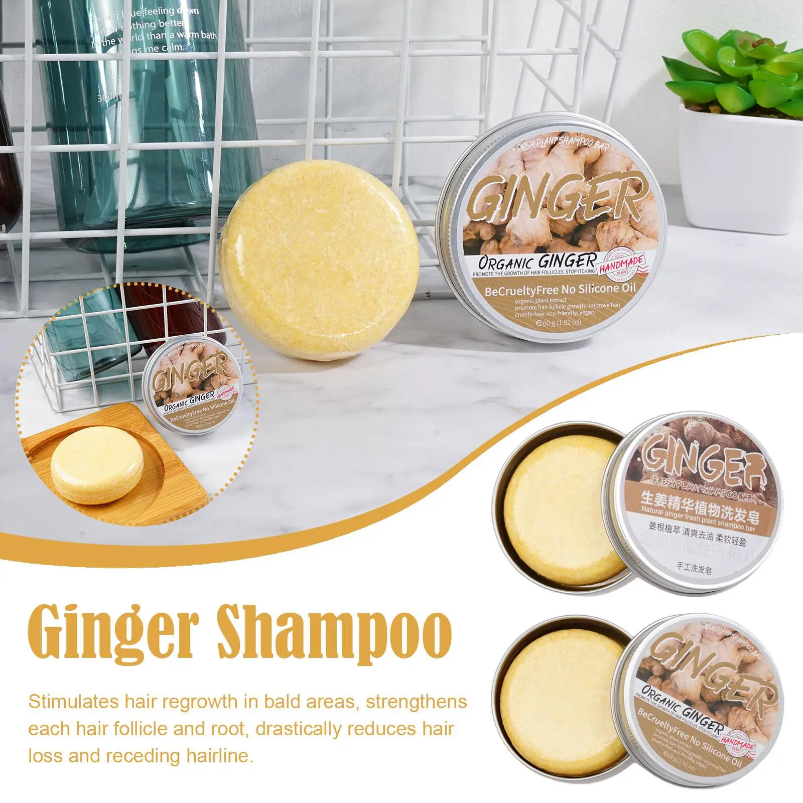 Safe Ingredients — Ginger Regenerating Shampoo Soap uses pure natural plant ingredients, does not contain harsh chemical ingredients, and is safe to use.