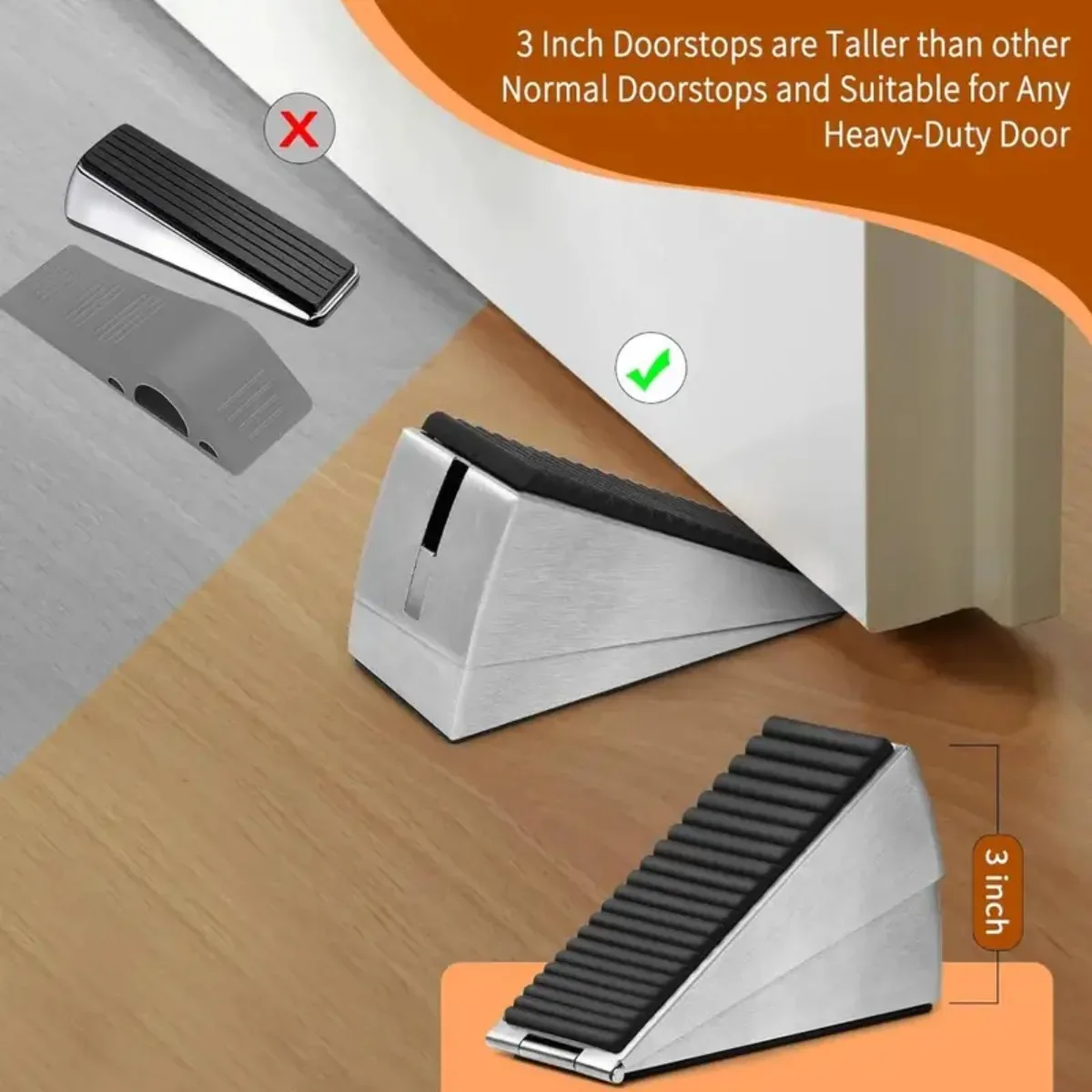 Stainless Steel Heavy Duty Door Stopper Non Slip Rubber Adjustable Spring Door Wedge for Bottom of Door Home Improvement Dodgers